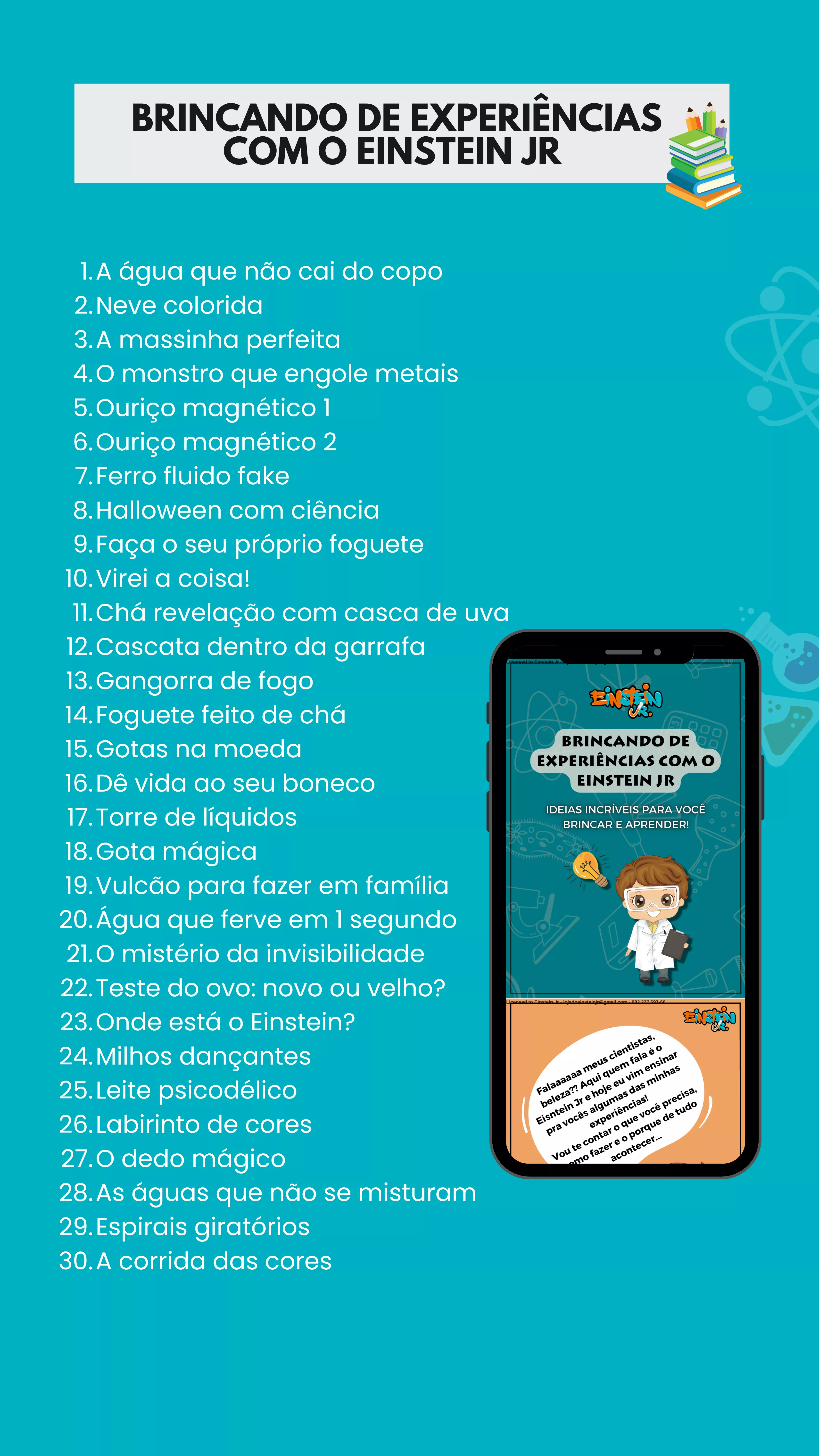 O Pacote Einstein Jr foi criado para que qualquer adulto, mesmo iniciante, sem base científica, consiga aplicar experiências reais com crianças sem medo de errar.